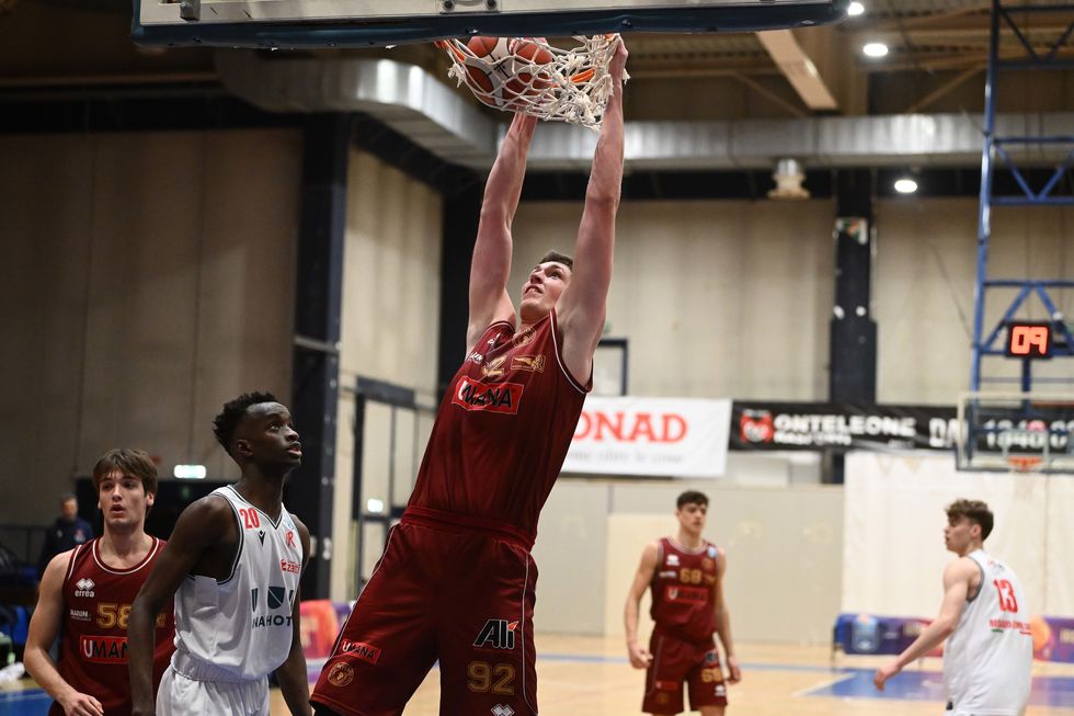 L’Umana Reyer Venezia rimonta da -22 e conquista una spettacolare vittoria contro la UNAHOTELS Reggio Emilia all’overtime nel Round 6 del Girone A della IBSA Next Gen Cup 2023/24. Gli emiliani partono forte in difesa e capitalizzano alcuni recuperi chiudendo al ferro con Camara (14 punti) e I.Suljanovic (26 punti, 13 rimbalzi, 8 falli subiti e 29 di valutazione), mentre gli orogranata si affidano ai centri dalla lunetta di Vanin (16 punti e 9 rimbalzi) e Iannuzzi (28 punti) per sbloccarsi (6-4). La UNAHOTELS continua però a mostrare una grande intensità difensiva, i fratelli Suljanovic danno spettacolo al ferro e da lontano e assieme al lungo Yadde sigillano un gran 16-0 di break interrotto solo dall’affondata di Vanin del 20-6. Dopo altre magie di Imran e Omer Suljanovic (38 punti 5/21-4/11-16/18 e 5 rimbalzi) per il +16 Reggio Emilia, Pellizzon (10 punti, 6 recuperi e 4 assist) sale di colpi in penetrazione e scuote l’Umana Reyer, lasciando poi a Munari (25 punti, 7 assist, 9 falli subiti, 5 rimbalzi, 32 di valutazione) la penetrazione vincente che avvicina ulteriormente gli orogranata sul 24-12. Al termine del quarto, I.Suljanovic riaccende la UNAHOTELS ma Bonivento e Pellizzon fanno proseguire il buon momento veneziano propiziando il 26-16 dopo 10’ di partita. Successivamente, si accende anche Iannuzzi oltre al solito Munari mentre gli emiliani approfittano ancora dei guizzi di I.Suljanovic e un proposito Adebowale nel pitturato per mantenere comunque distante Venezia (29-22). Grazie a una tripla di Pastorelli e a un gioco da tre punti di I.Suljanovic, Reggio Emilia ferma l’inerzia orogranata ispirata da un super Munari (anche ad assistman per i lunghi Vanin e Macrì), prima che Bonaretti e Mainini con una bomba ripristinino la doppia cifra di vantaggio UNAHOTELS (39-28). Tocca poi ancora ai fratelli Suljanovic riprendersi il proscenio, aggiornando assieme a Pastorelli il massimo vantaggio reggiano sul +19, prima che Presutto e Pellizzon rimettano un minimo in carreggiata gli orogranata con le loro penetrazioni (48-32). Sul finire del tempo, O.Suljanovic firma un bel canestro di talento e Camara batte la sirena siglando il contropiede vincente del 52-34.