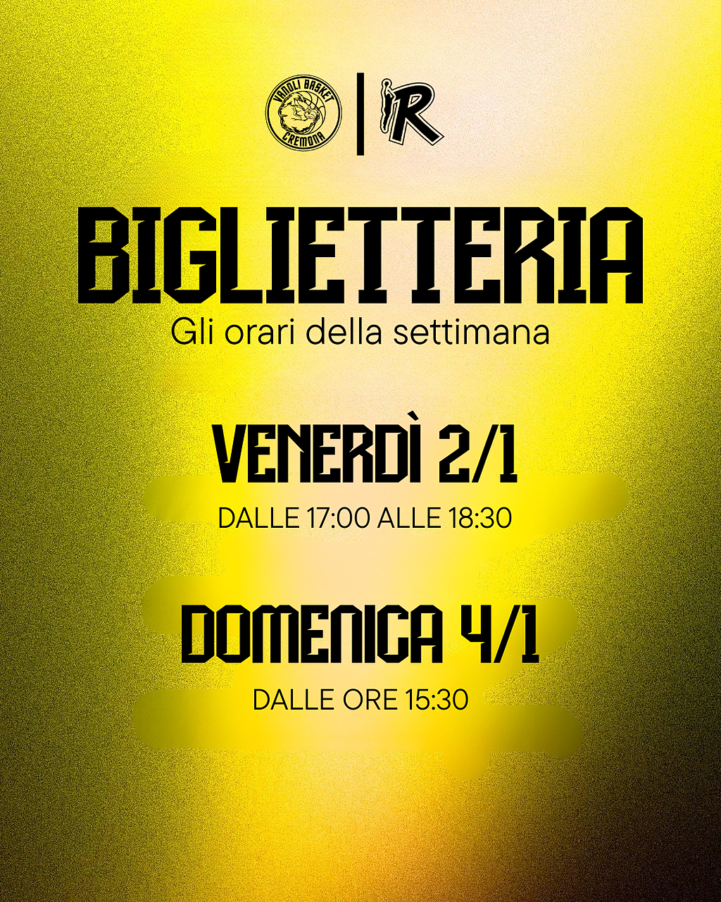La biglietteria del Pala Radi per questa settimana sarà aperta nei seguenti orari: